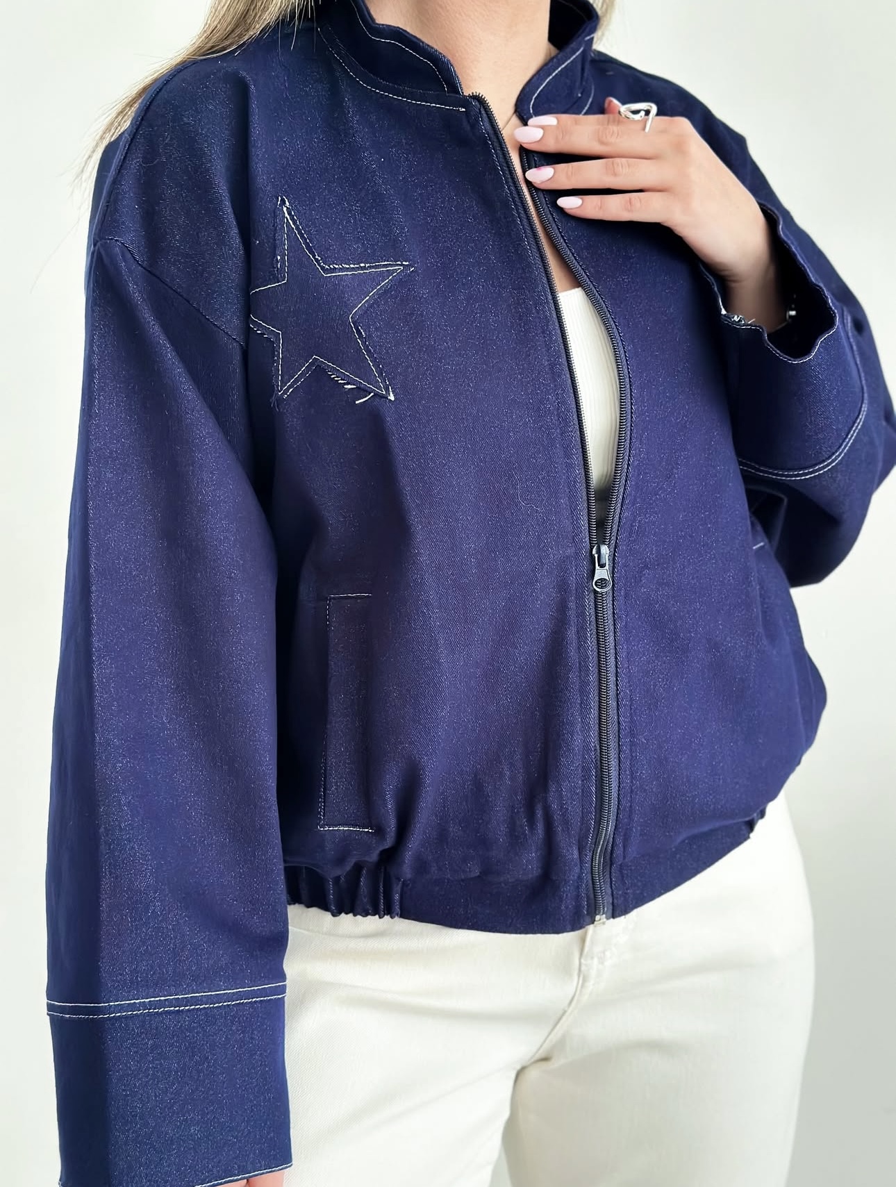 بامبر جکت جین زنانه ، اسپرت مدل ستاره فری سایز مناسب روزمره وکافه