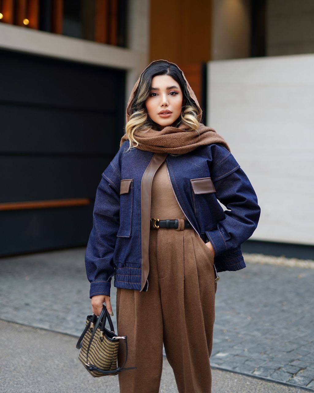 بامبر جکت جین و چرم زنانه اسپرت فری سایز مناسب روزمره وکافه