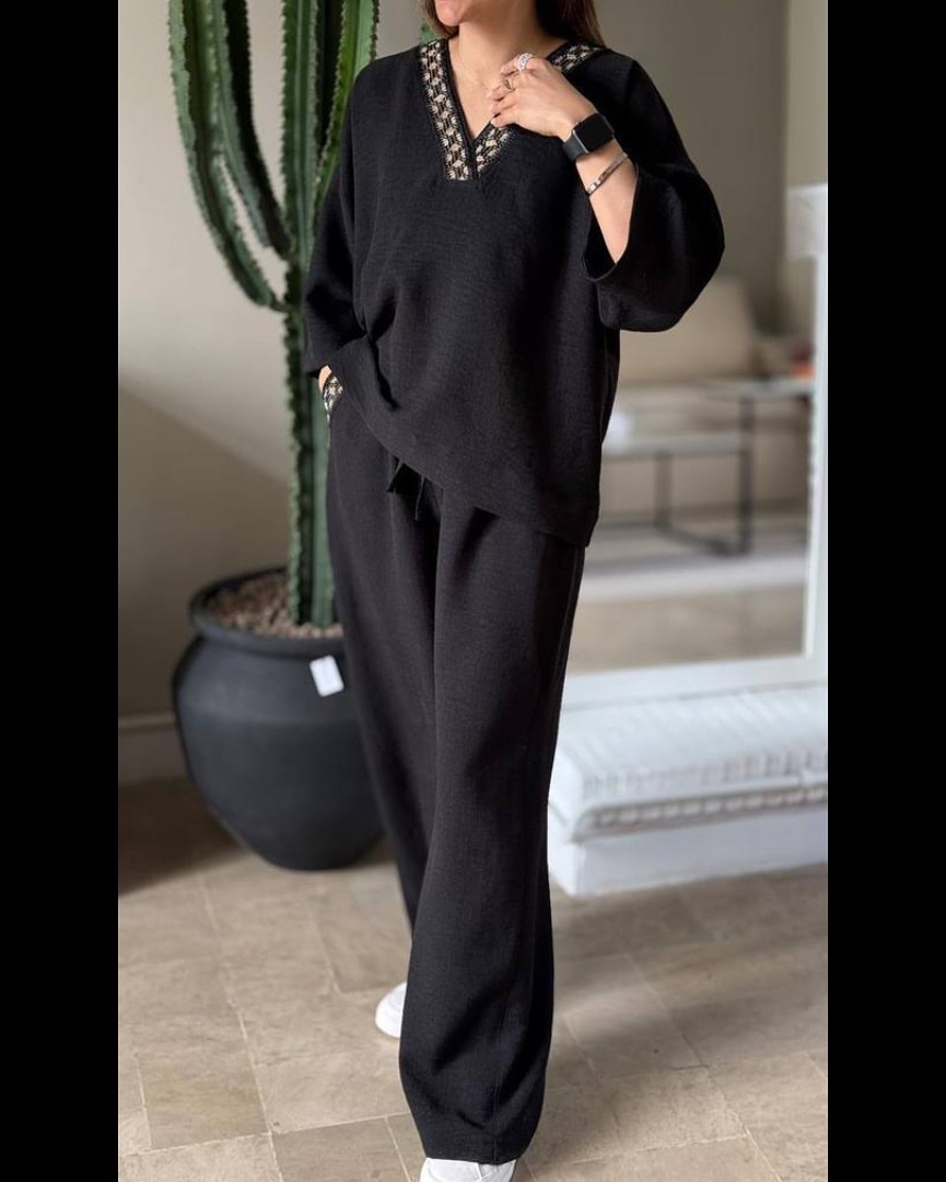 ست شومیز و شلوار نواردوزی طرح آنجل فری سایز و دارای رنگبندی مناسب روزمره