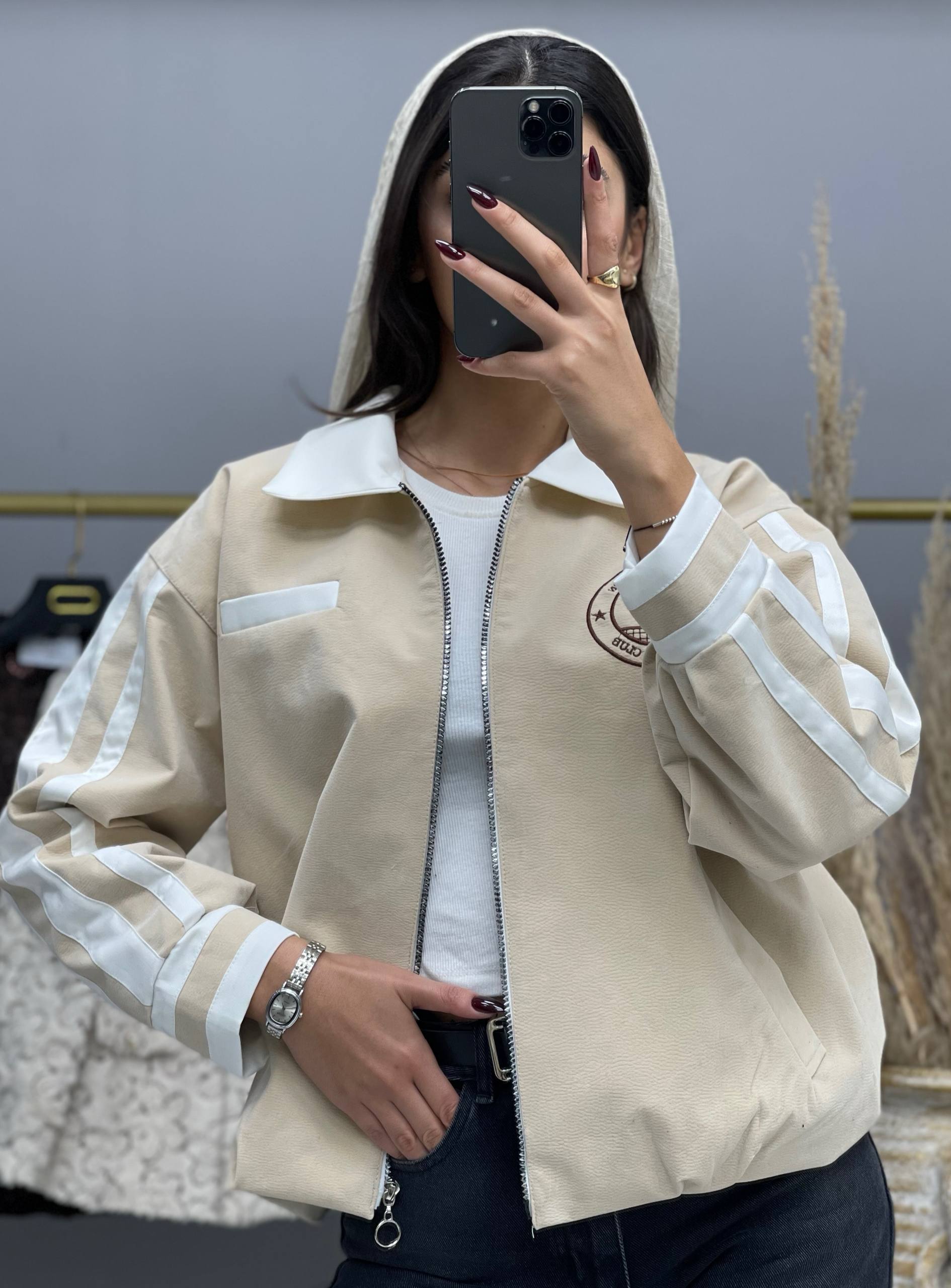 جکت آمبوردی کلاهدار زنانه فری سایز مناسب روزمره و پیاده روی