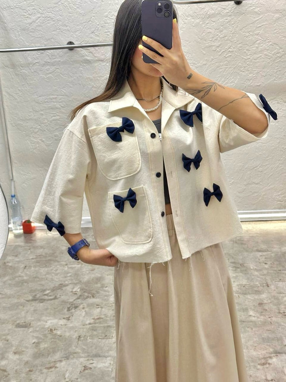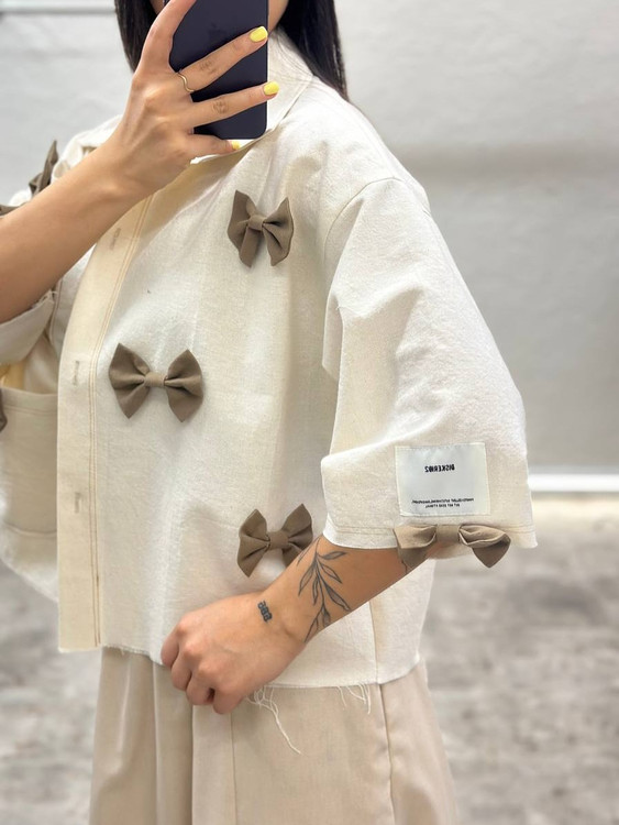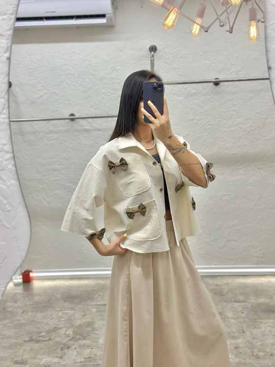 کت باربی جنس: لینن درجه ۱ سایز بندی : فری سایز( ۳۶ تا ۴۴) رنگبندی: کت کرم با پاپیون های کرم، مشکی