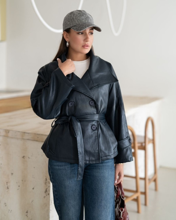 کت زنانه چرم درجه یک فری سایز مناسب مهمانی و روزمره