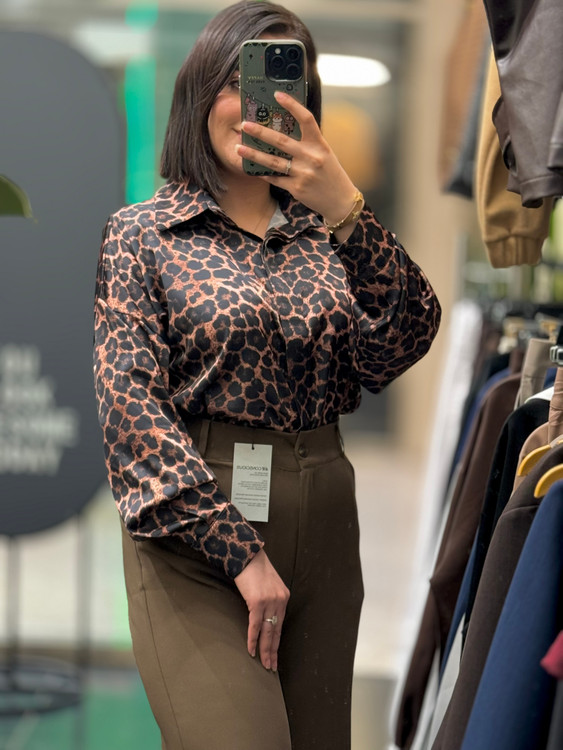 شومیز زنانه ساتن پلنگی مناسب مهمانی فری سایز