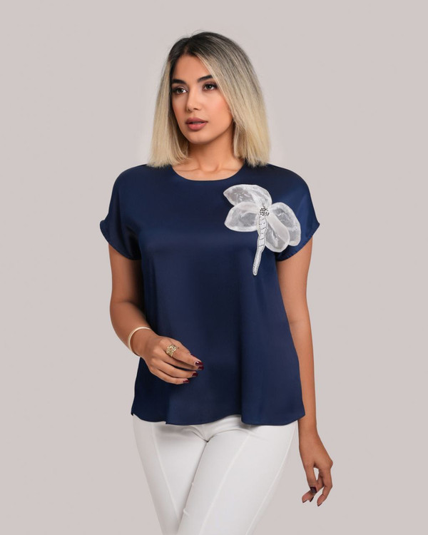 شومیز زنانه ساتن مدل سنجاقک فری سایز مناسب مهمانی و زیرکت