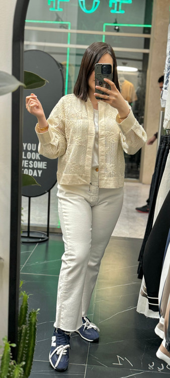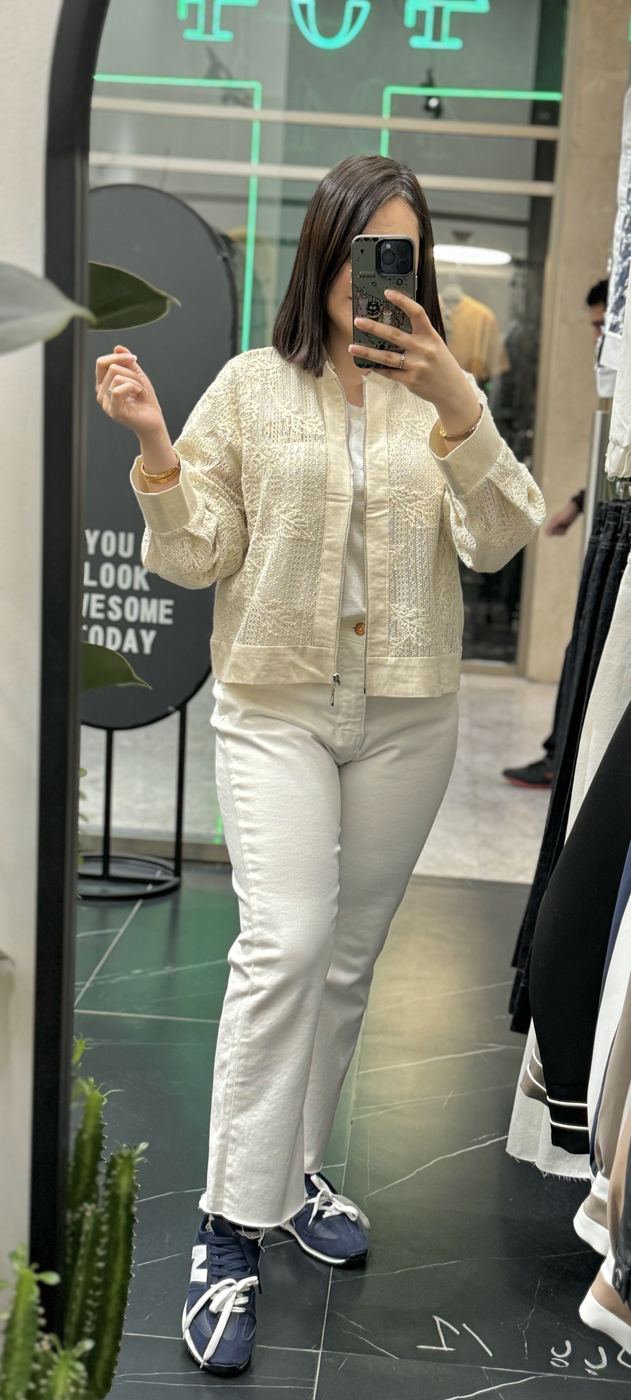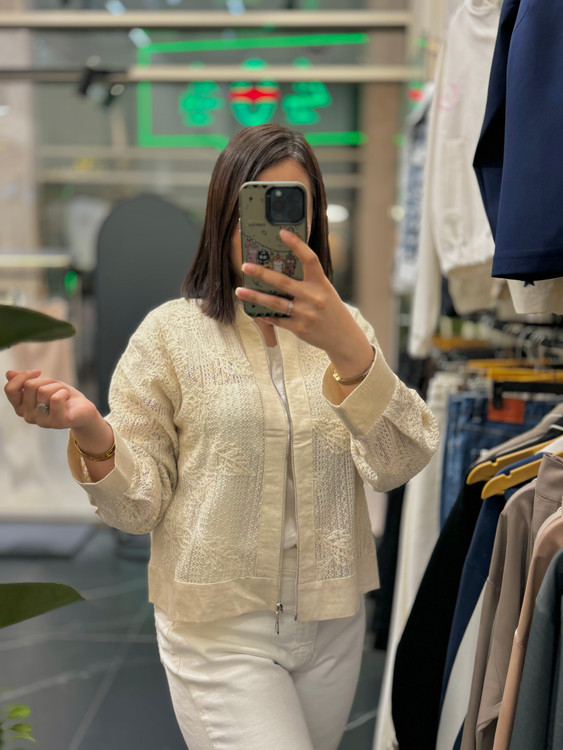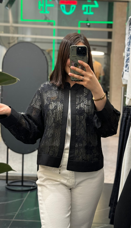 بامبر جکت زنانه گیپور مکرومه فری سایز مناسب مهمانی و روزمره