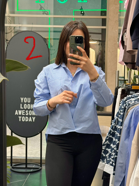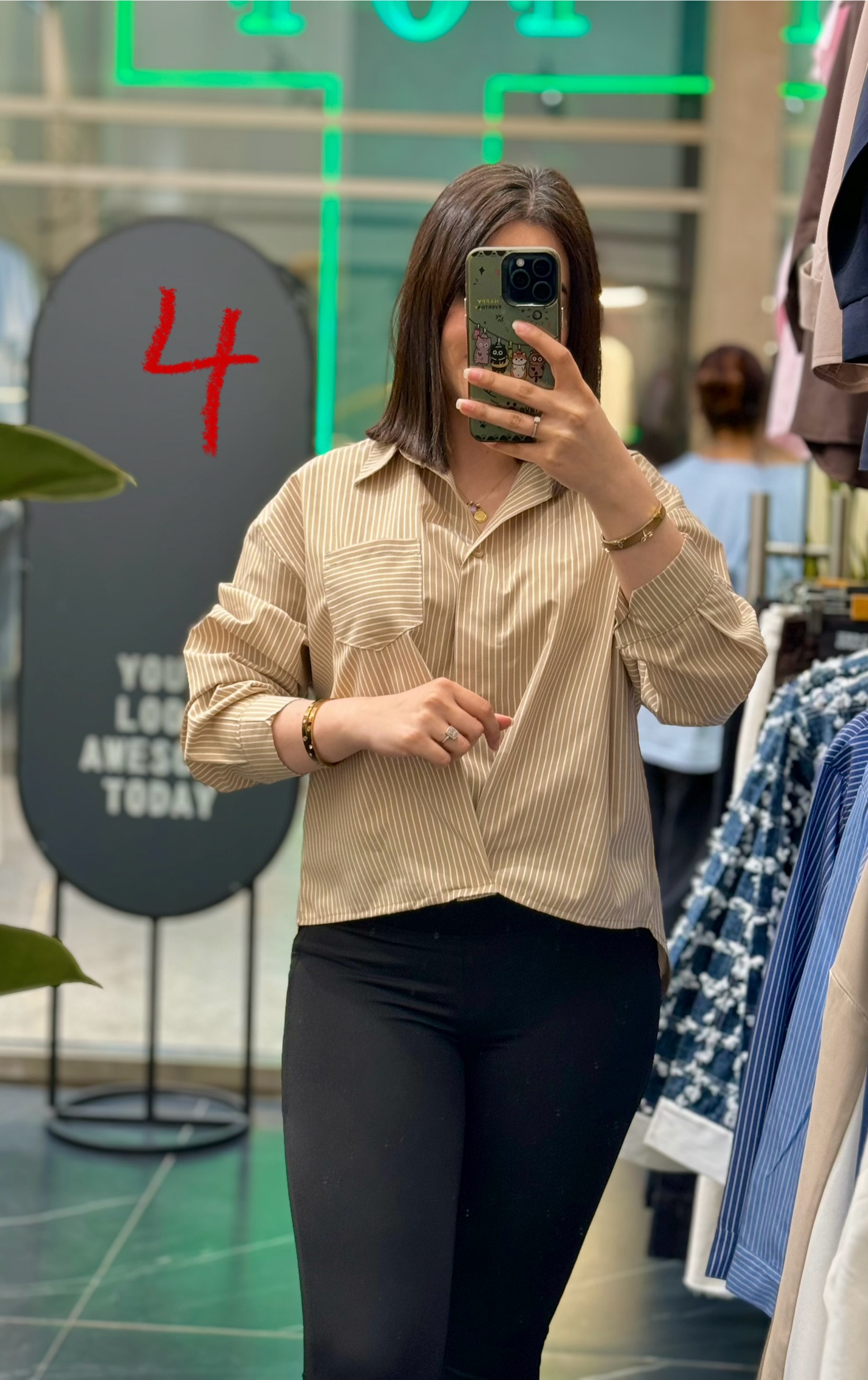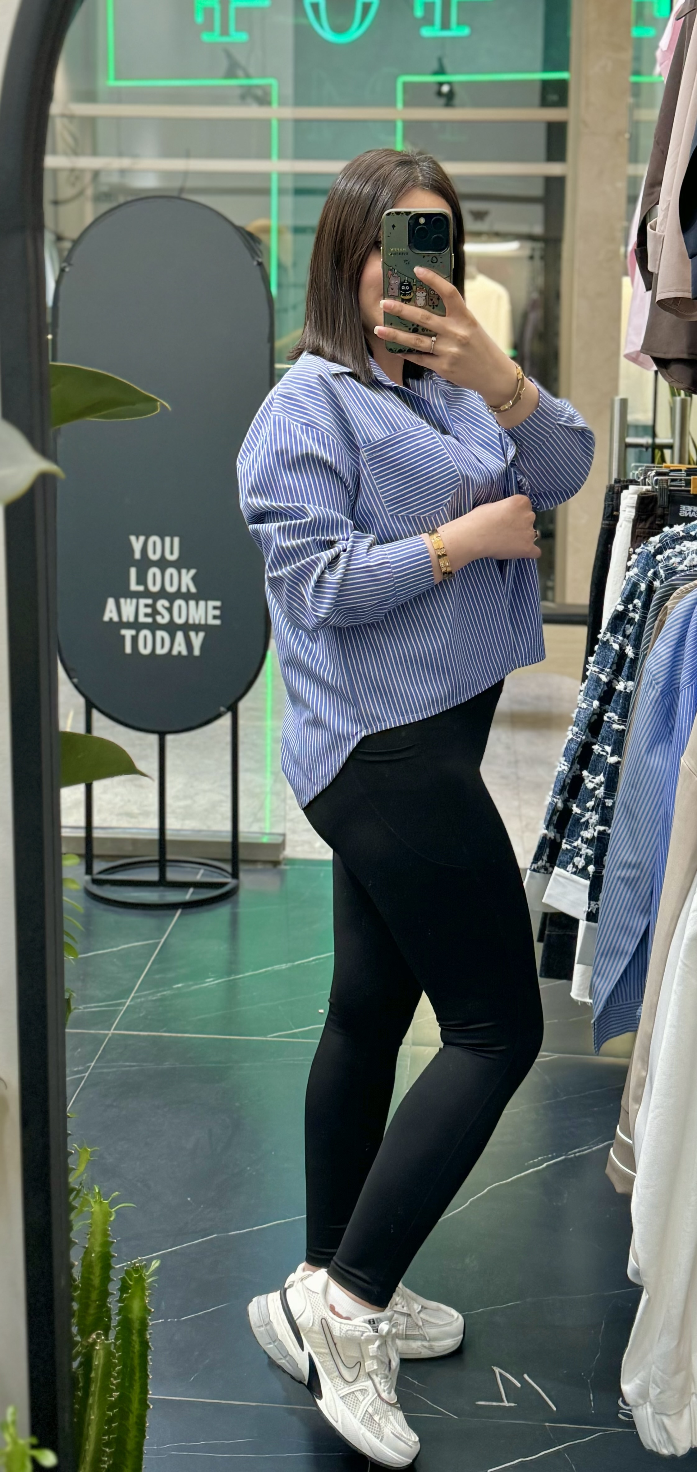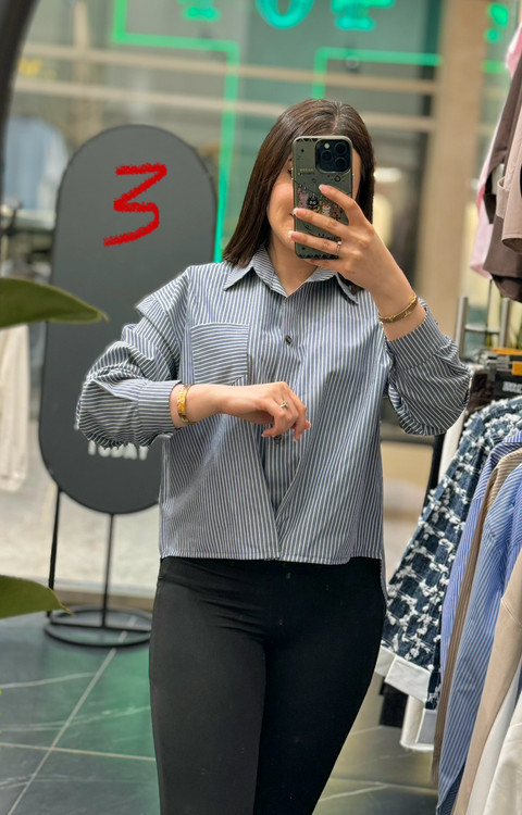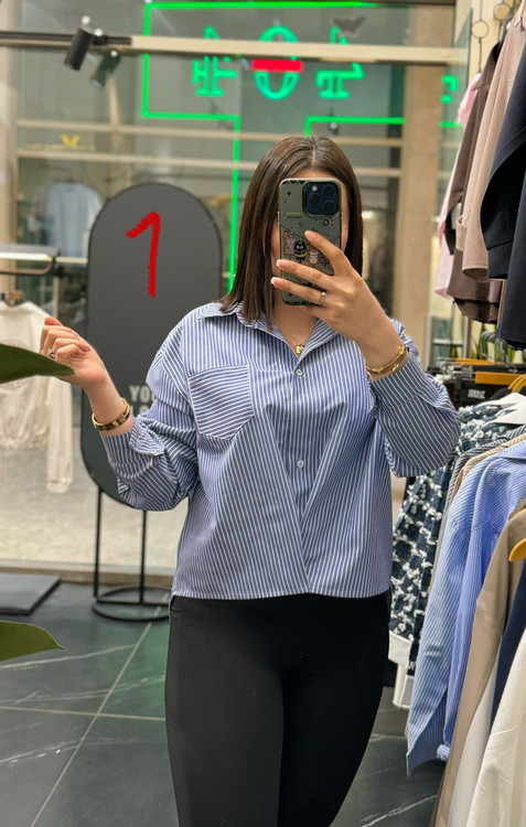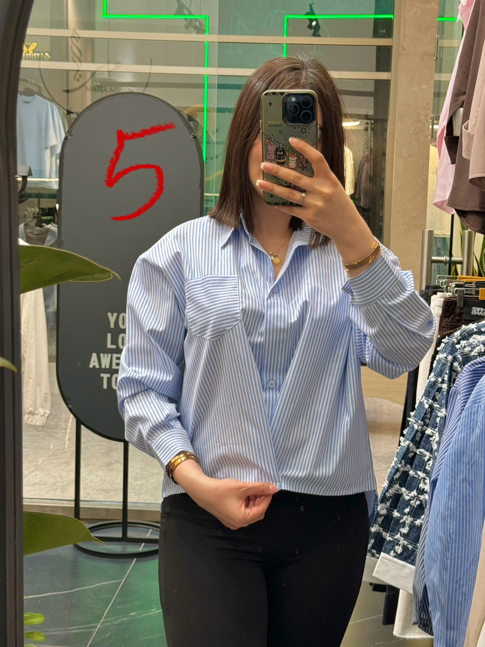 شومیز زنانه راه راه جلو دوخت فری سایز