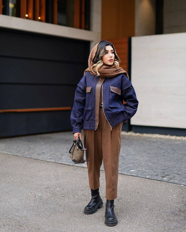 بامبر جکت که با جنس جین گرم بالاو چرم باکیفیت دوخته شده و مناسب استفاده روزمره و مهمانی میباشد